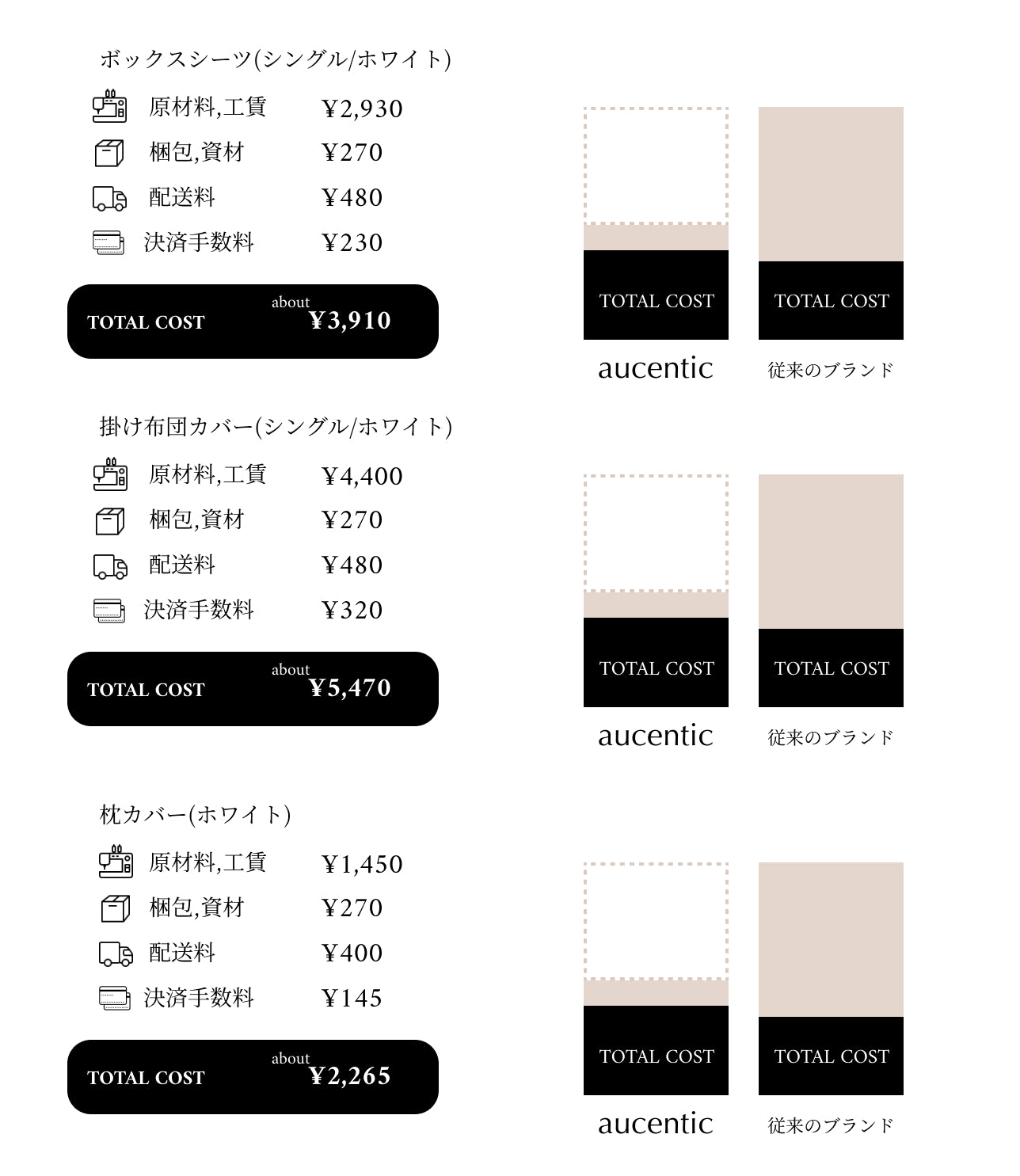 5つ星ホテルやラグジュアリーベッドリネンブランドのリネンを手掛けていた製造元と提携して作っています。