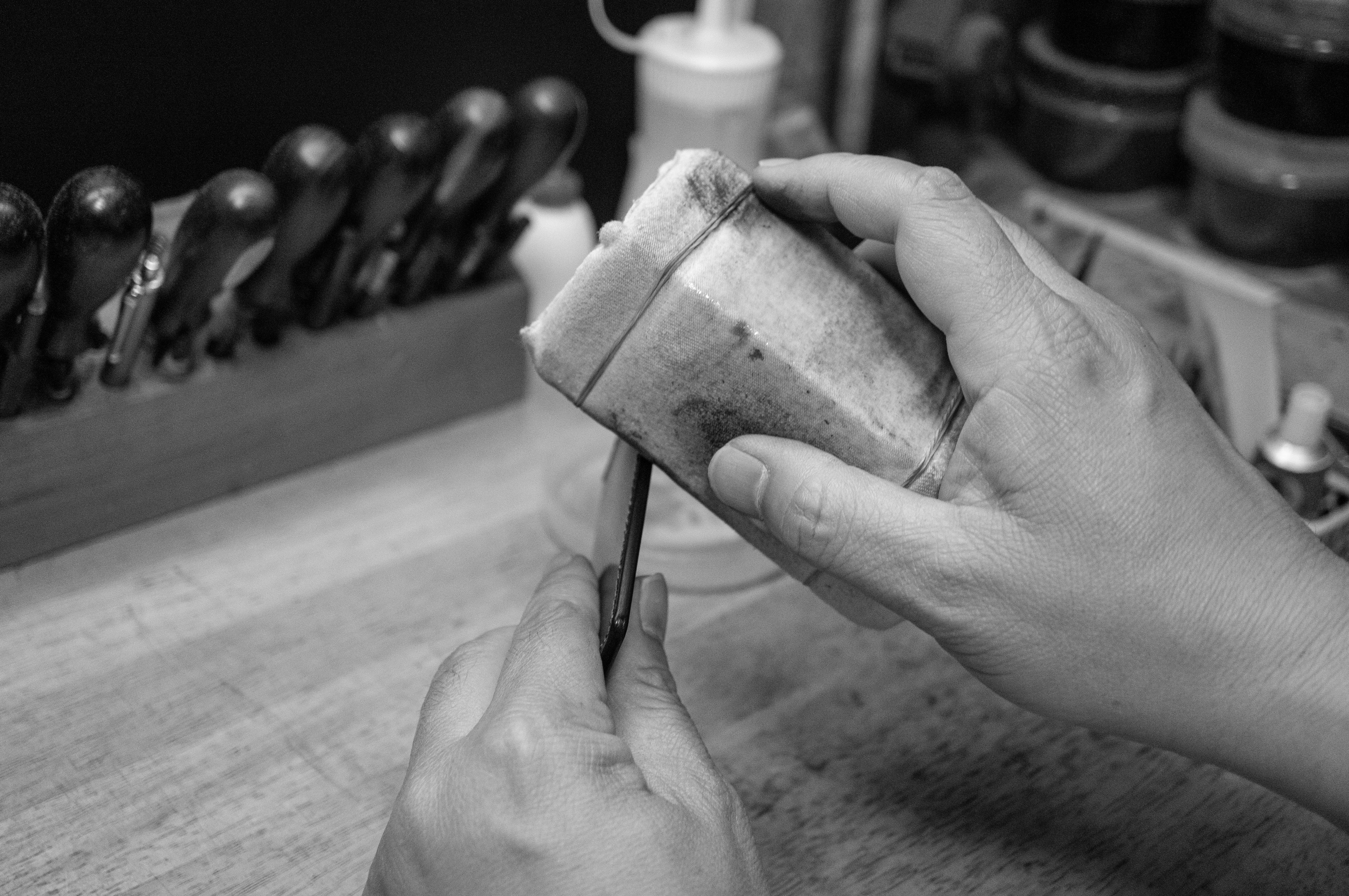 ブライドルレザーとコードバンの専門の職人によるここだわりのものづくり