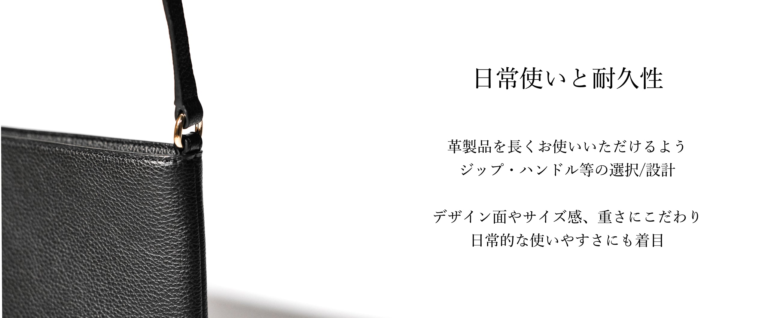 皮の柔らかさやしっとり感を表現するために程よい厚みに調整しています。そのため、過度に重いものや角の尖ったもので革が伸びる恐れがあります。