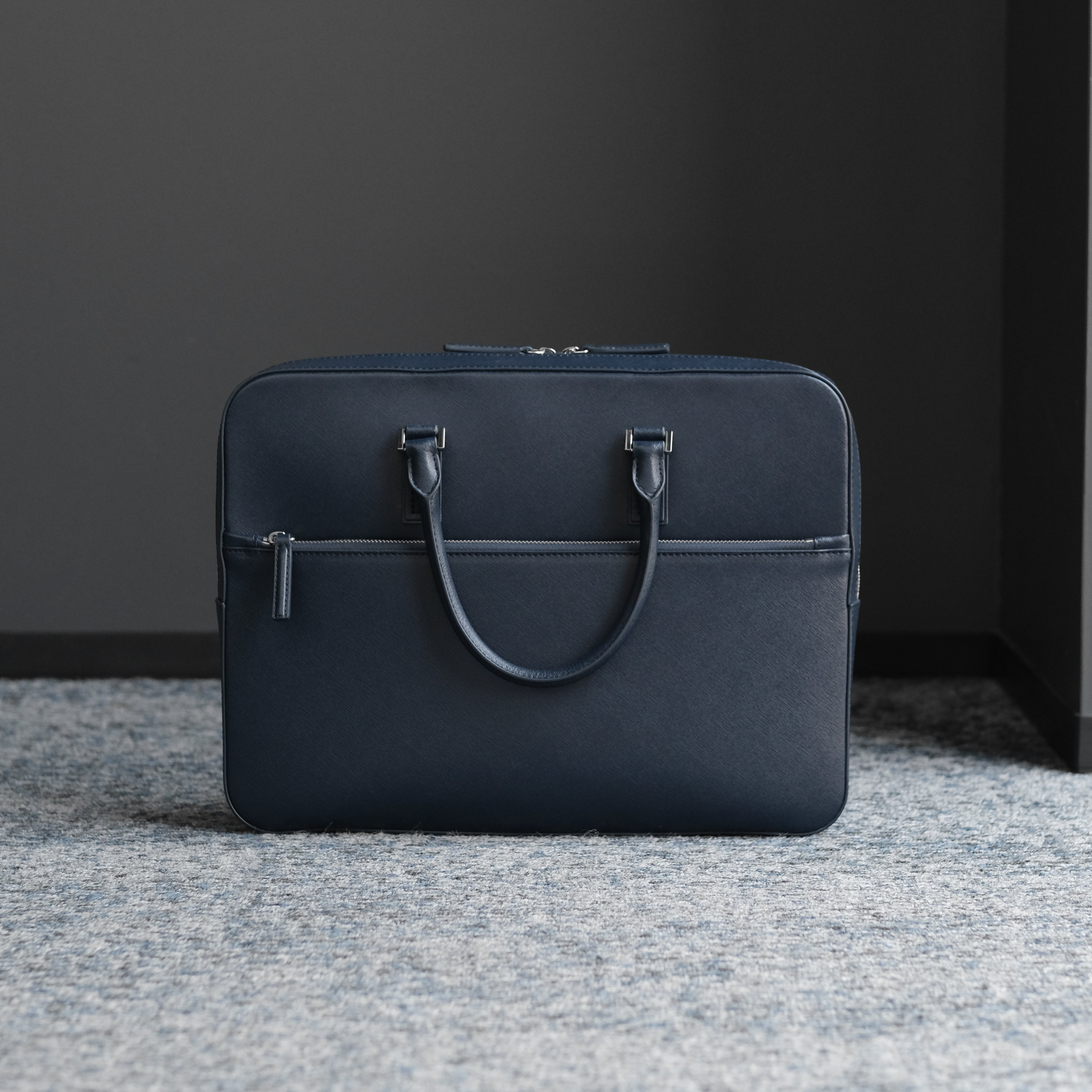 Italian Saffiano Leather Briefcase- Navy (Front-zip)