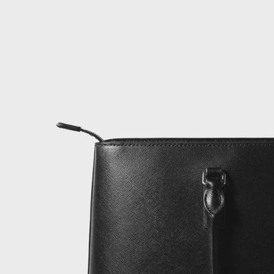 人目を引く艶が特徴のイタリアンサフィアーノレザーを使用した、軽量で耐久性の高い万能トートバッグ。